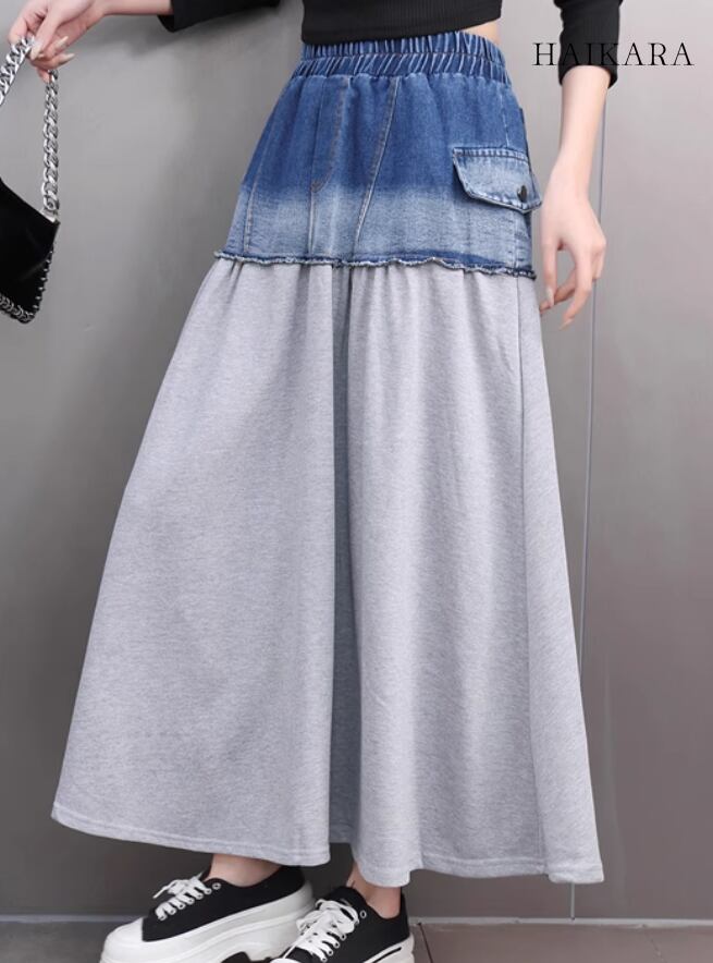 ★【 2色の生地を使用した切り替えデザイン、カジュアルスタイルのスカート 】