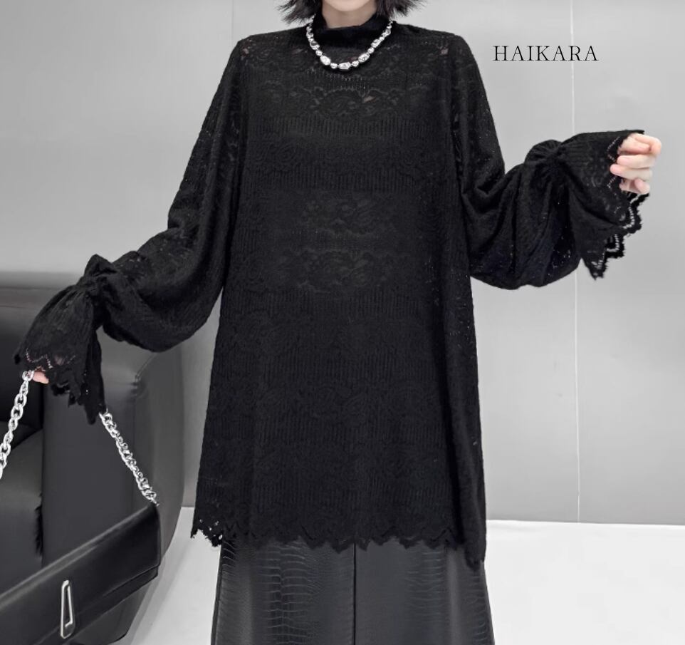 ★【 裾や袖にレース風加工を施したエレガントスタイル、お好みの服に合わせやすいシックなトップス 】