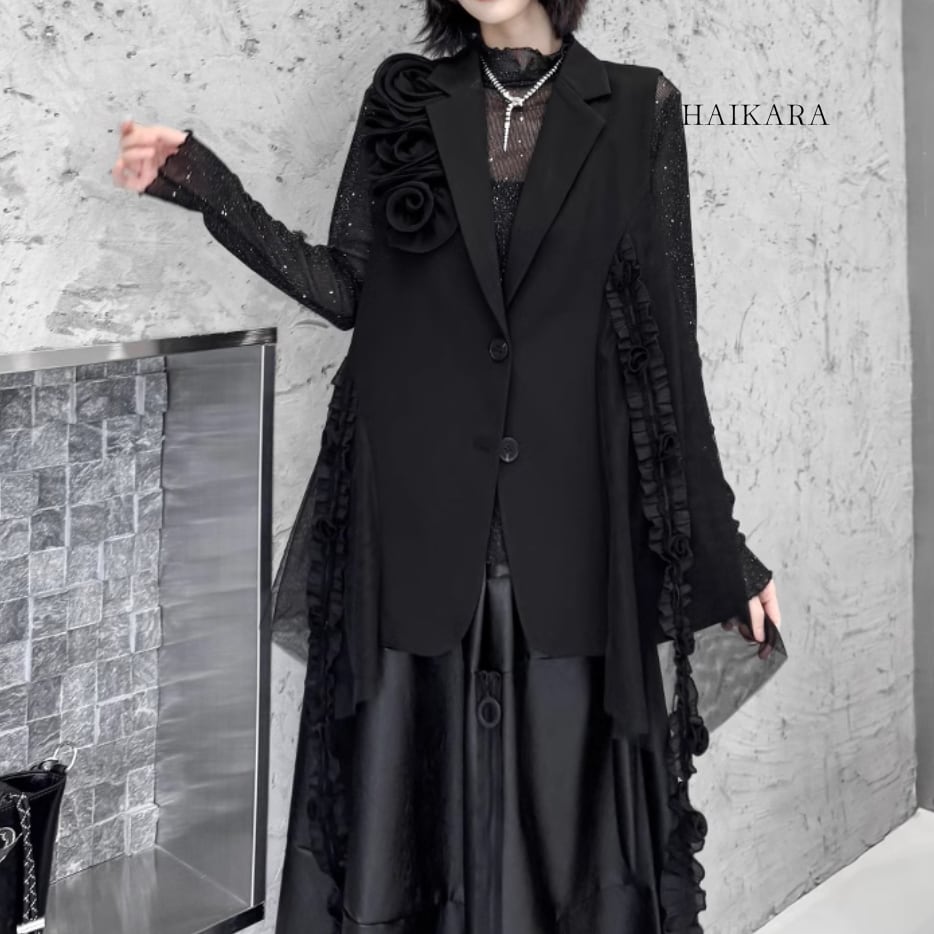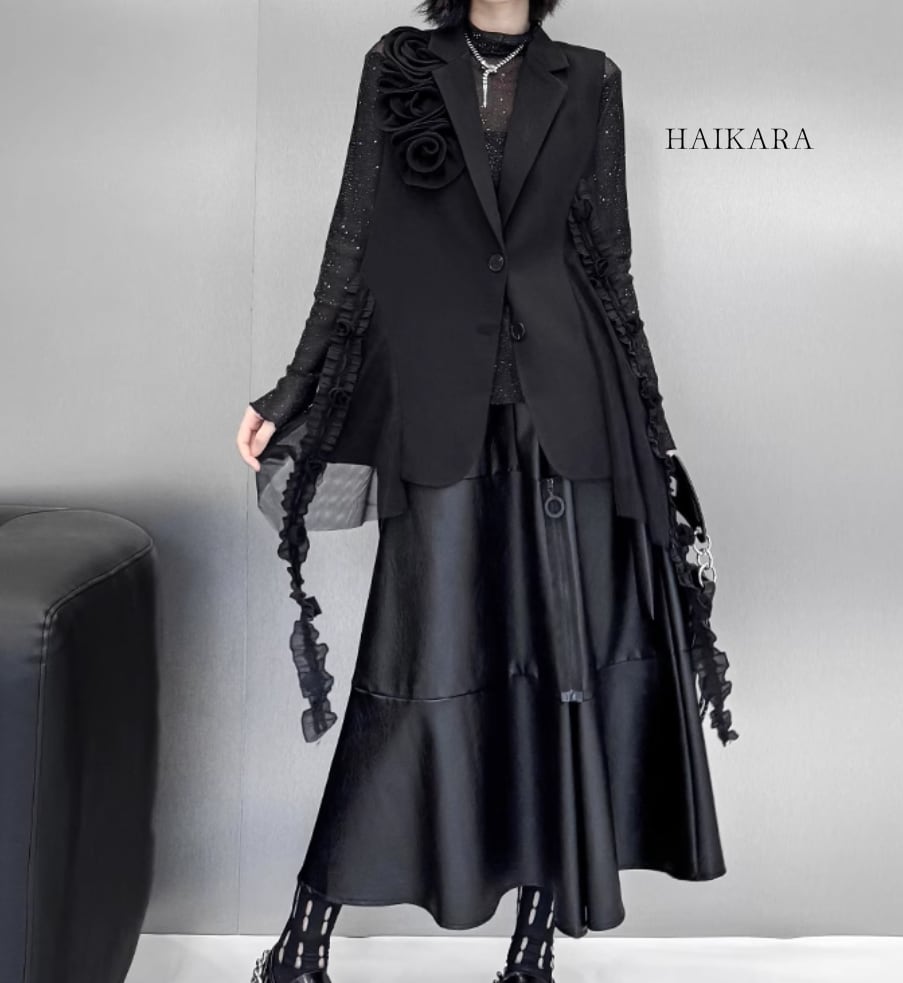 A gorgeous black vest with frill accents