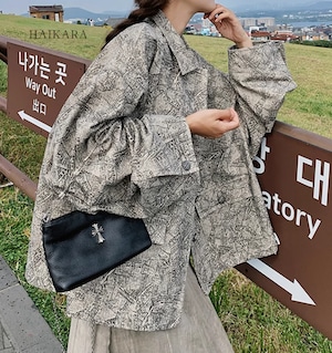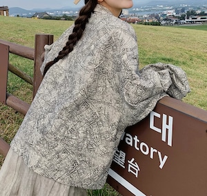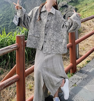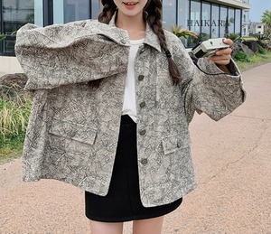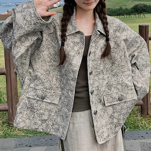 ★【 テクスチャ感のある柄がポイントのシックなデザイン、ルーズなシルエットのカジュアルジャケット 】