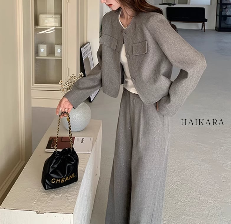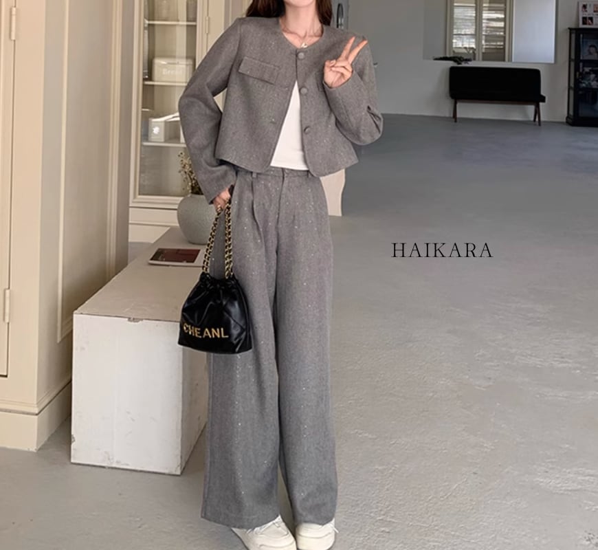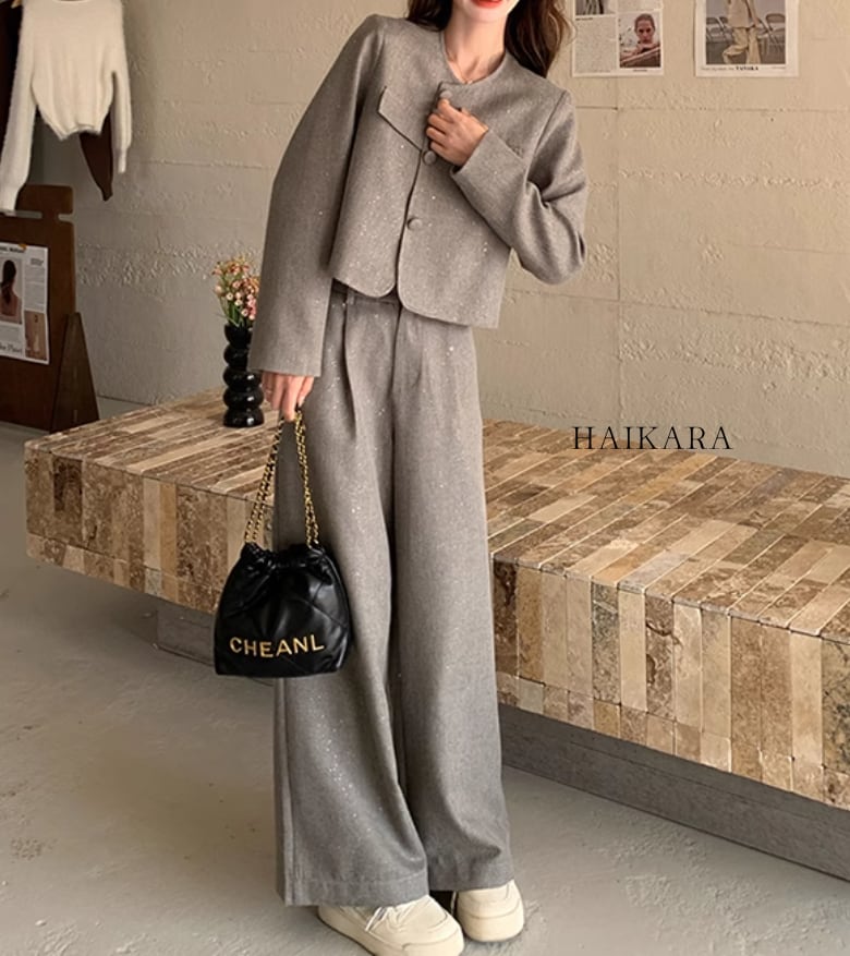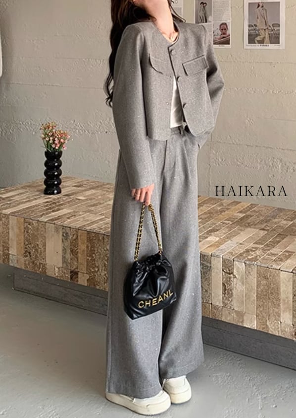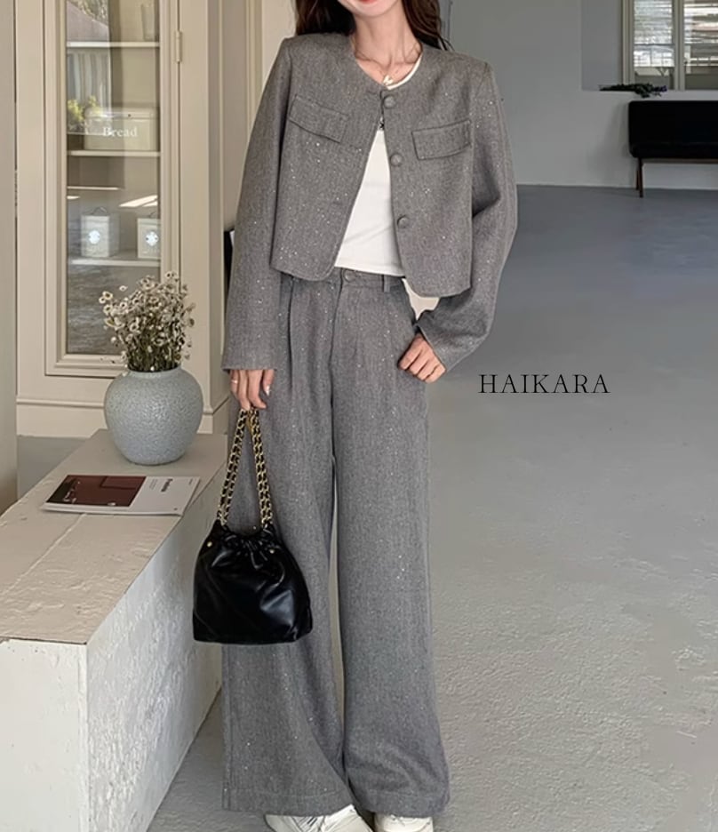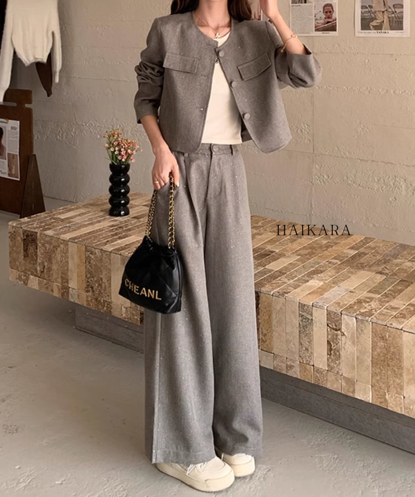 The set-up is a chic design with a relaxed silhouette and calm colors, easy to wear for various occasions.